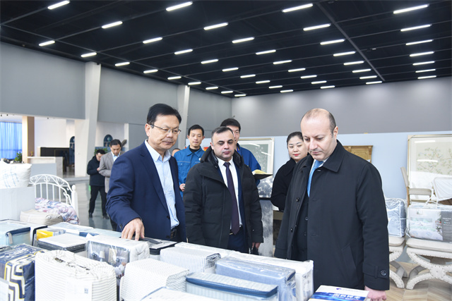 特穆爾·納迪羅格魯公使一行參觀了公司智云中心、檢測中心、綜合辦公區(qū)、服裝面料公司、花布公司、家紡公司、創(chuàng)意中心、研究院、花布車間、面料車間、家紡車間、家紡成品車間、服裝車間等區(qū)域,高度贊賞了公司在科技創(chuàng)新、環(huán)保實(shí)踐、產(chǎn)品多元化、產(chǎn)業(yè)布局等方面的成就。